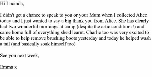 Below are some letters from happy parents/riders click to enlarge them Back to Photos / Fun